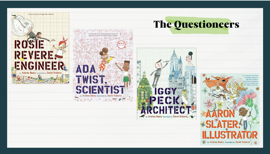 The Questioneers have even made their way to Netflix! Ada Twist, Rosie Revere, and Iggy Peck star in their own Emmy award winning series where they work together to discover the world around them. There is even a corresponding book series for the show.
