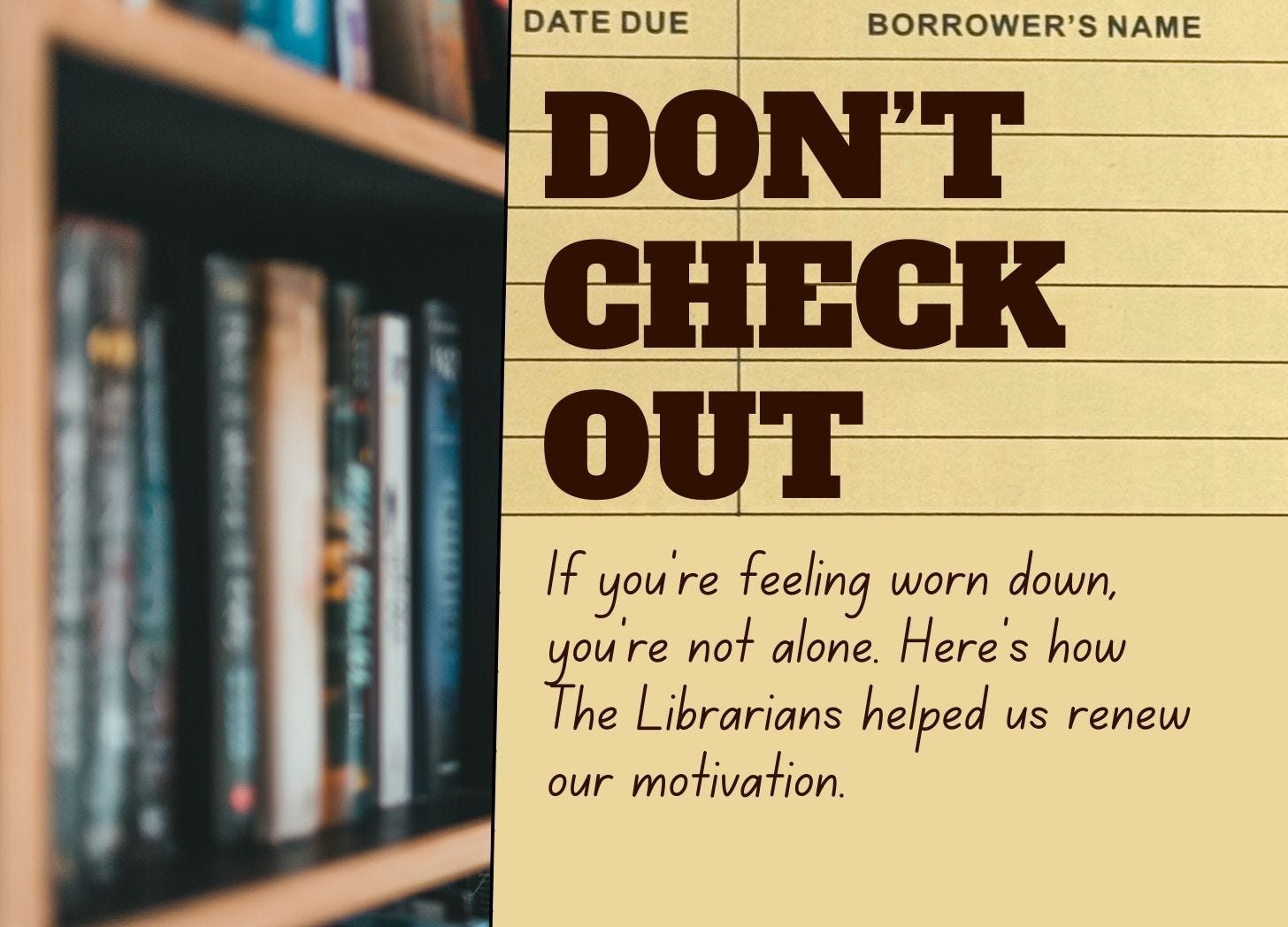 Watching The Librarians was just what we needed to renew our motivation.